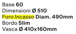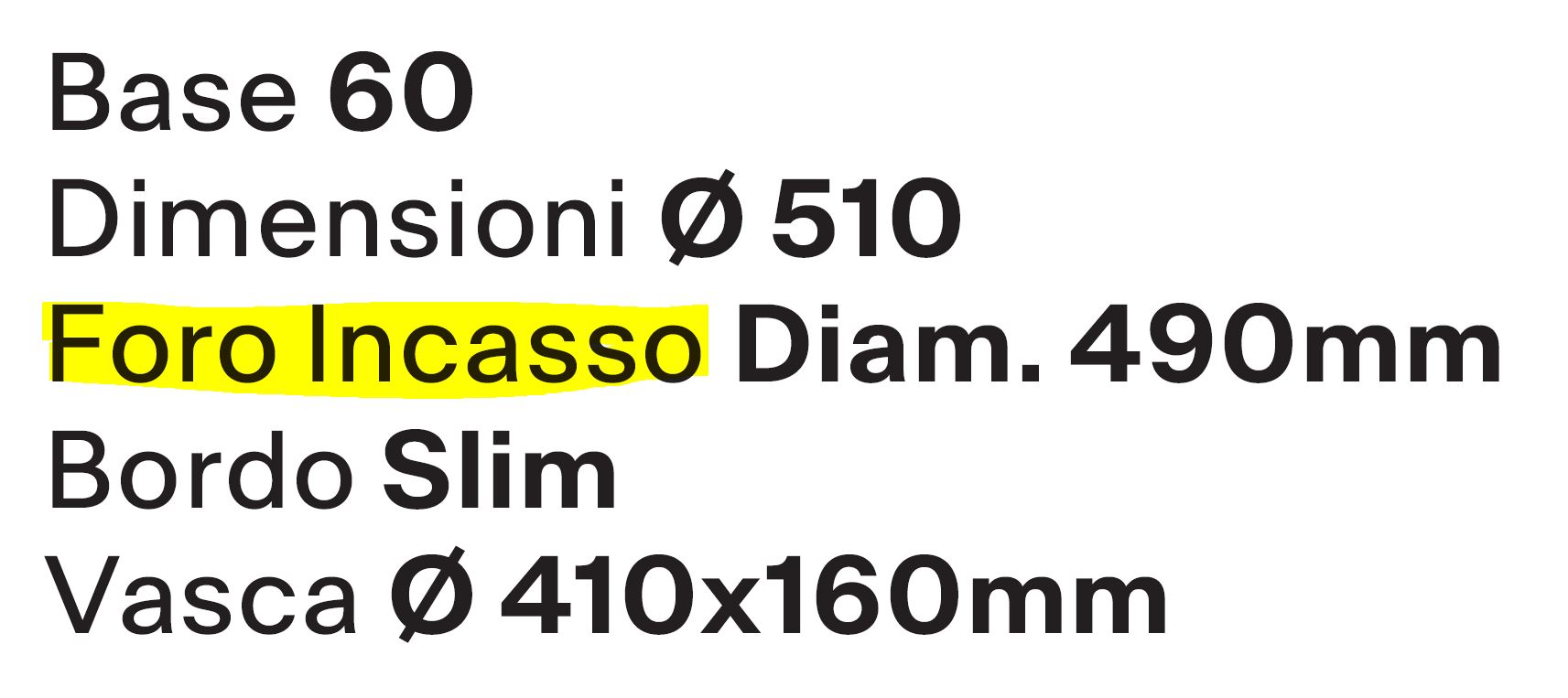 Lavello rotondo ROX610-41 Finitura inox Installazione incasso Base 60 Misure foratura top: diam.490mm